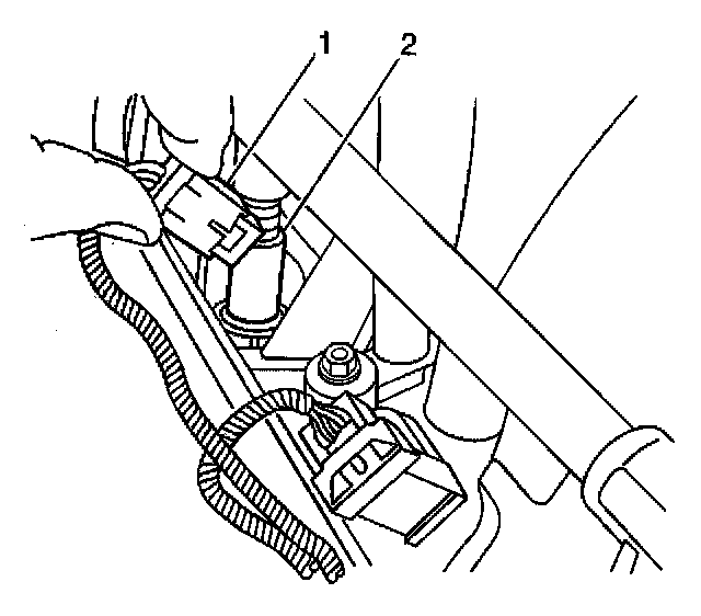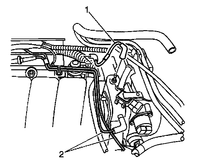 8. Disconnect the fuel inlet and return quick-correct fittings (2) at the fuel rail.