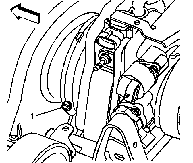 9. Disconnect the fuel rail bracket retaining nut (1) at the rear lift bracket.