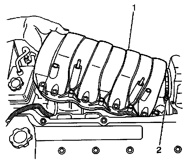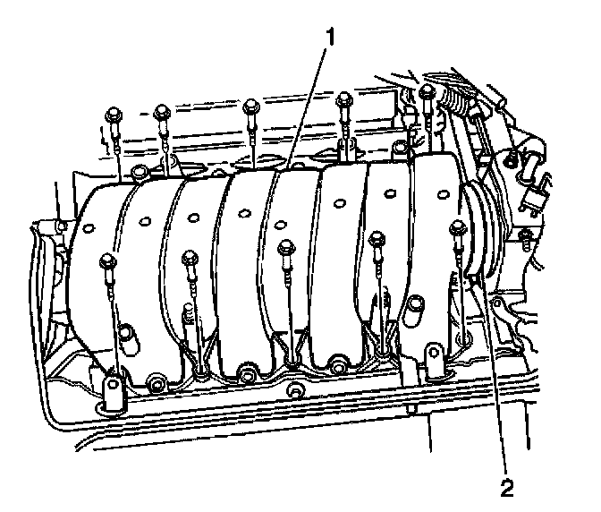 16. Remove the intake manifold (1) by using an upward lifting motion at the front of the manifold assembly.