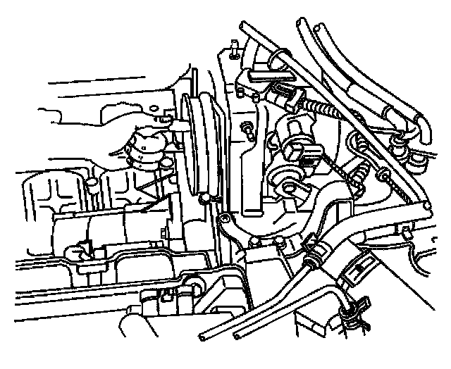 14. Loosen the plenum duct clamp (1) at the rear of the intake manifold.