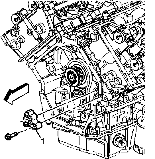 2. Remove the two bolts attaching the primary camshaft drive chain guide (1) to the engine block.
