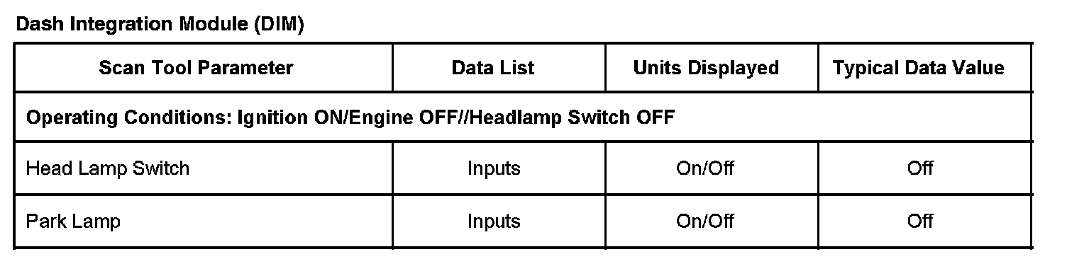 Scan Tool Data List - Dash Integration Module (DIM)