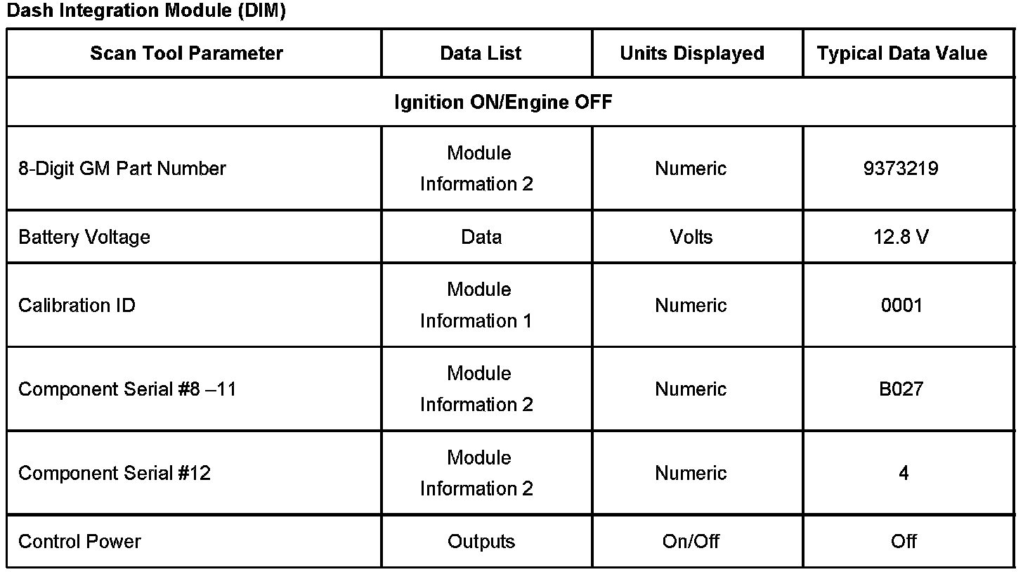 Scan Tool Data List - Dash Integration Module (DIM):