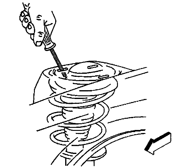 9. Adjust the caster by moving the top of the strut forward or rearward. A 1 mm (0.040 inch) position change at the tower is about equal to 0.1 degree change in caster. Set the caster to the required specification.