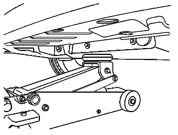 - The floor jack pad must not contact the rocker panel outside of the frame rail reinforcements.