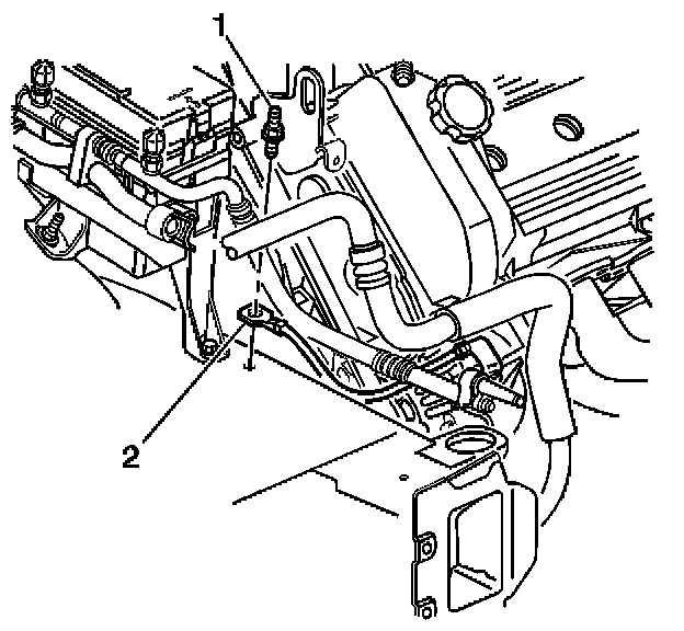 2. Remove the bolt (1) securing the engine ground cable (2) to the right side body frame rail.