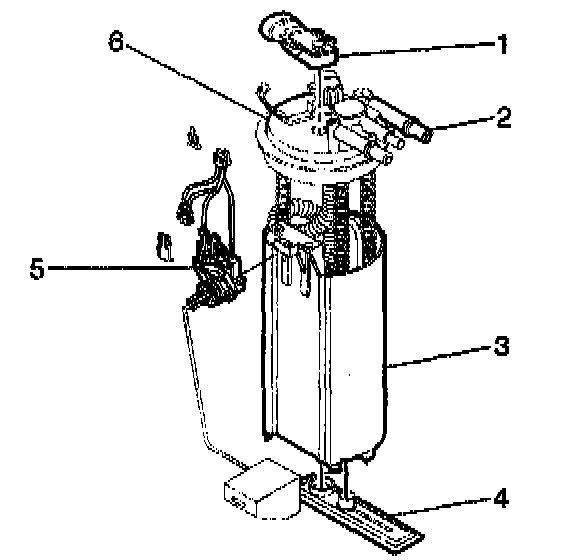 The fuel pump is mounted in the fuel sender assembly reservoir (3). The fuel pump is an electric high pressure pump. Fuel is pumped to the fuel rail at a specified flow and pressure. Excess fuel from the fuel rail assembly returns to the fuel tank through the fuel return pipe. The fuel pump delivers a constant flow of fuel to the engine even during low fuel conditions and aggressive vehicle maneuvers. The powertrain control module (PCM) controls the electric fuel pump operation through a fuel pump relay. The fuel pump flex pipe acts to dampen the fuel pulses and noise generated by the fuel pump.