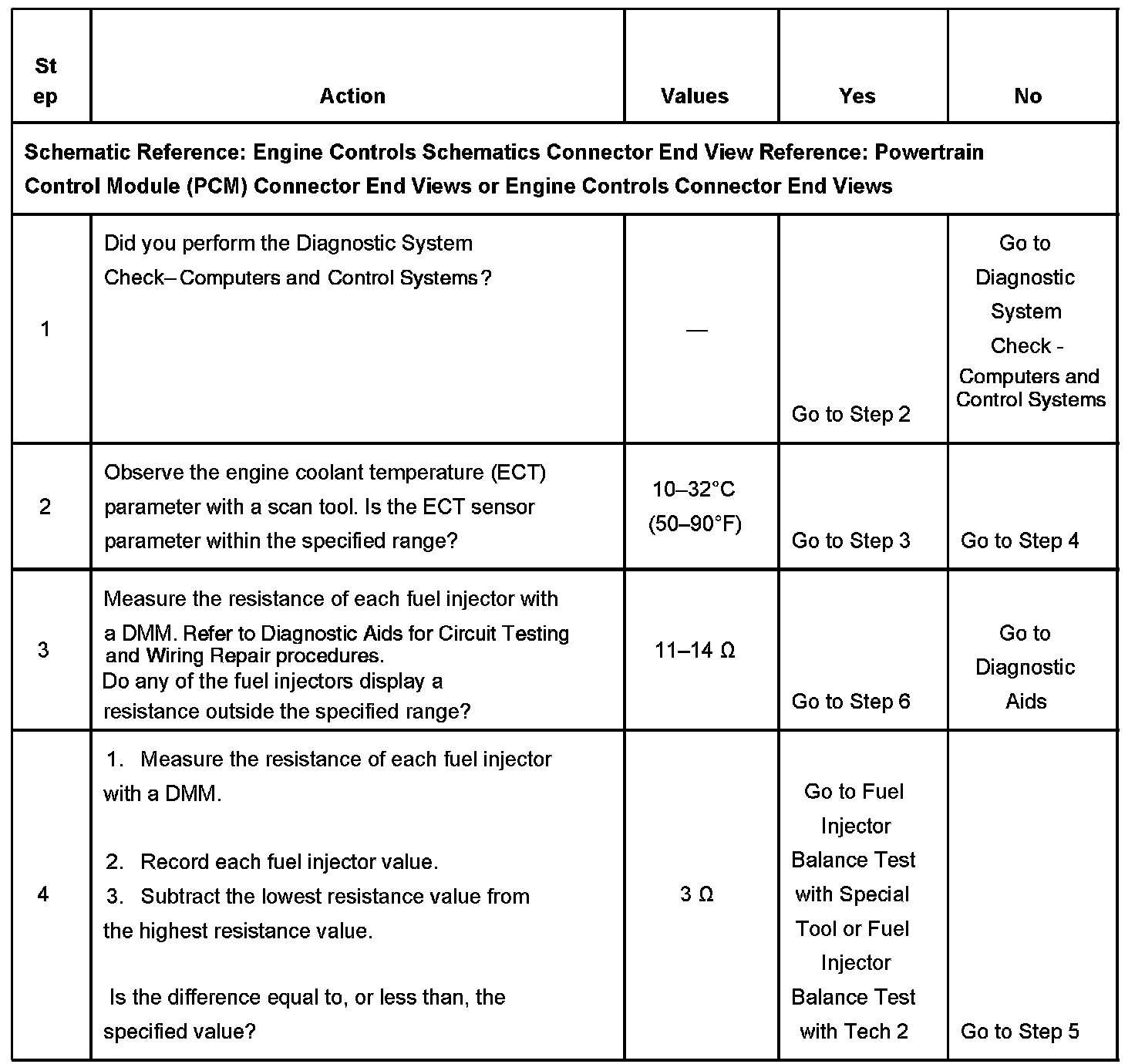 - If the fuel injector coil test does not isolate the condition perform the fuel injector balance test. Refer to Fuel Injector Balance Test with Special Tool or Fuel Injector Balance Test with Tech 2. Component Tests and General Diagnostics Component Tests and General Diagnostics