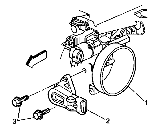 4. Remove the TP sensor retaining screws electrical connector (2) from the TP sensor (3).