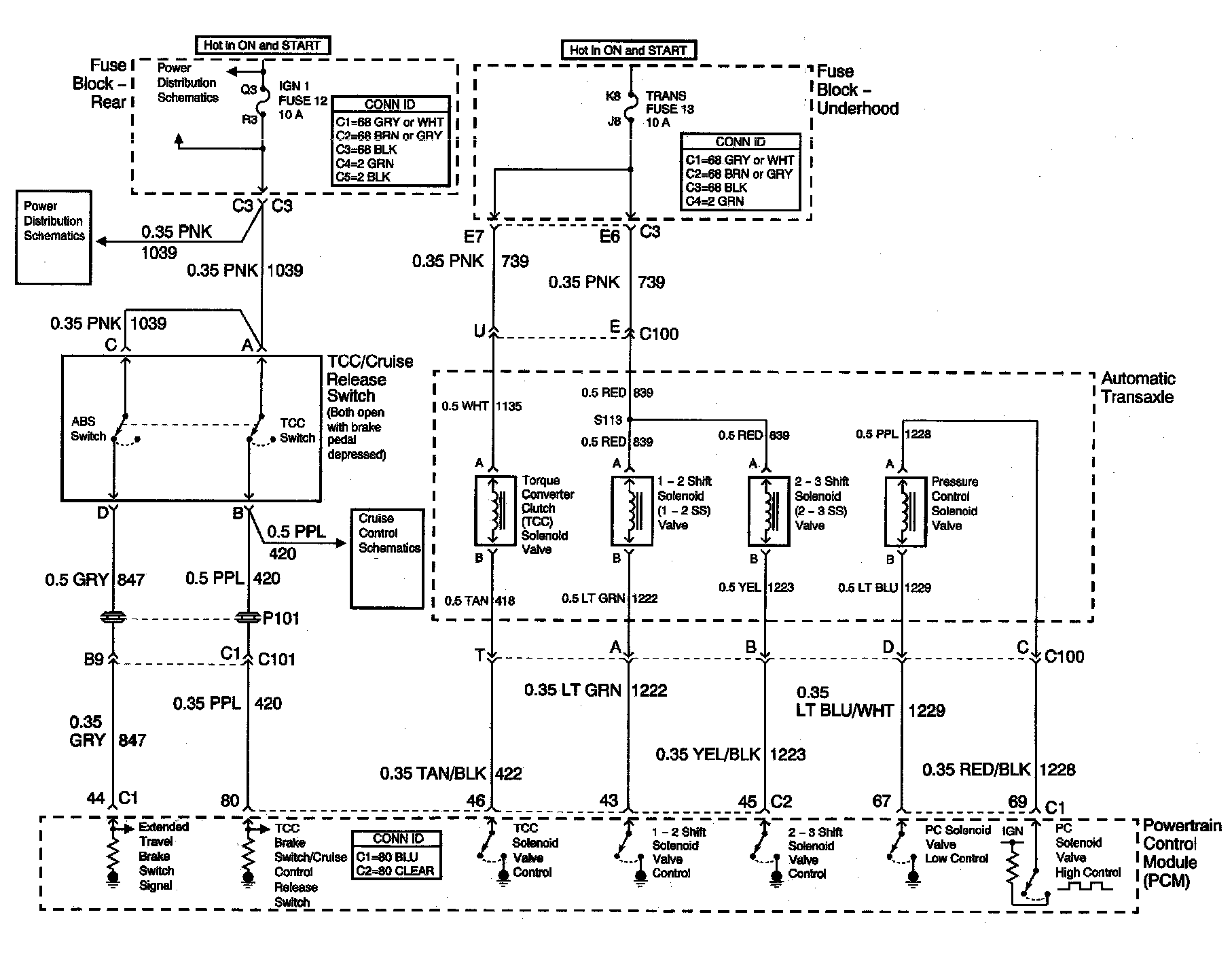 Automatic Transmission Controls Schematics (TCC/Cruise Release Switch and Transaxle Solenoids)