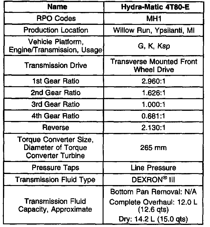 Transmission General Specifications