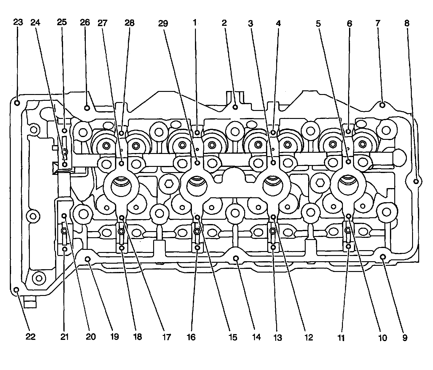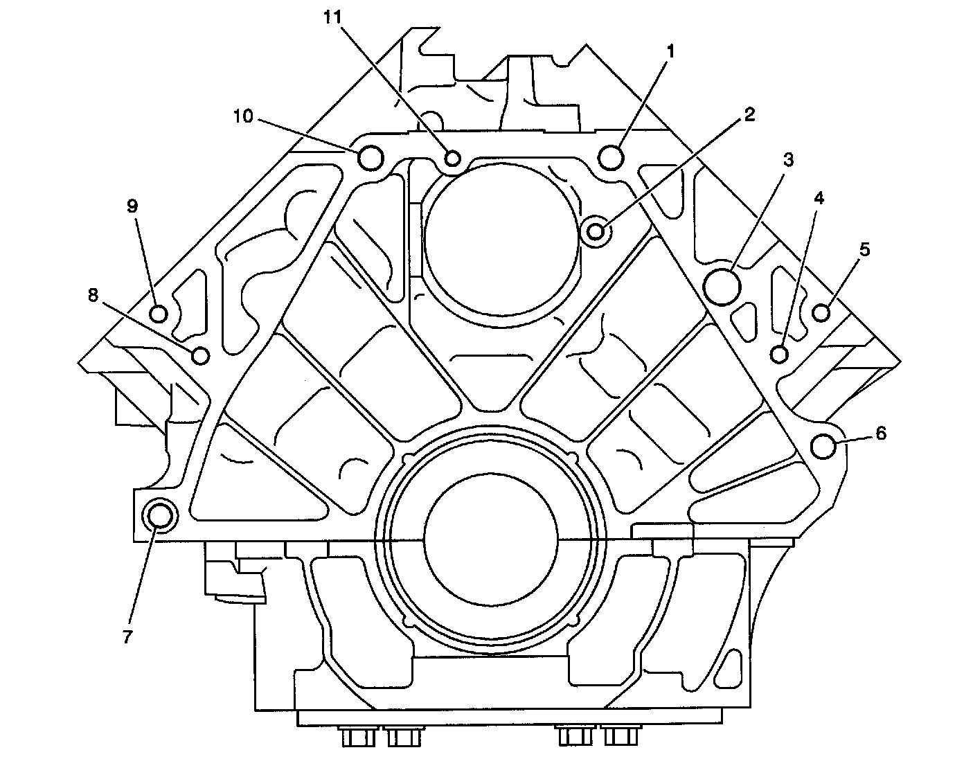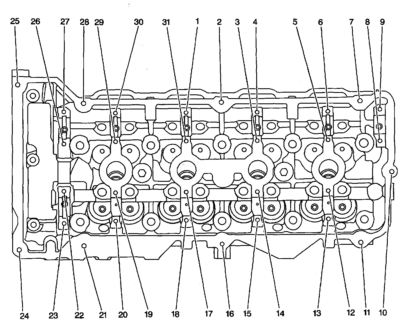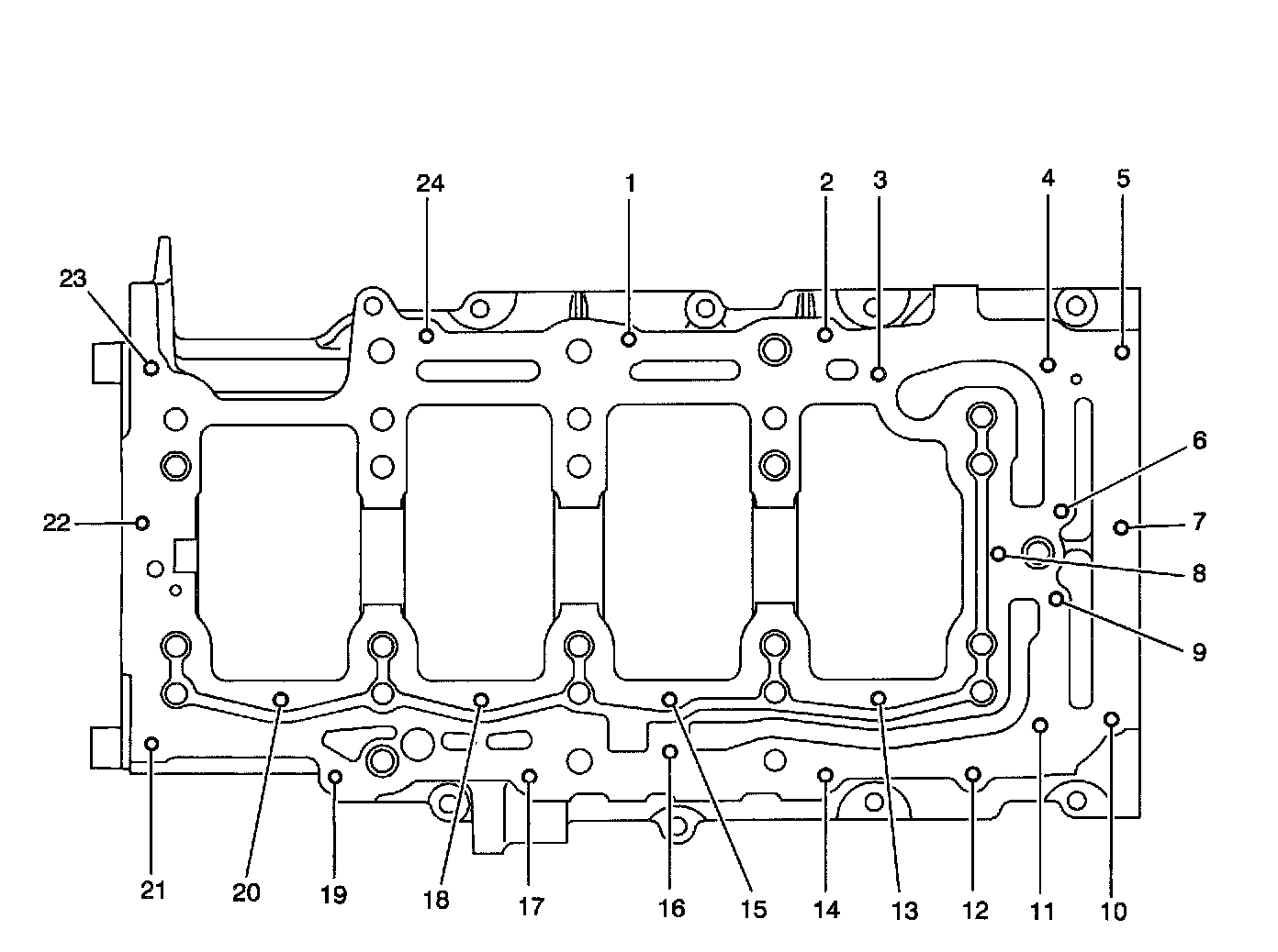 Tighten the lower crankcase bearing bolts (1 through 20) to 20 Nm (15 ft. lbs.) in the proper sequence.