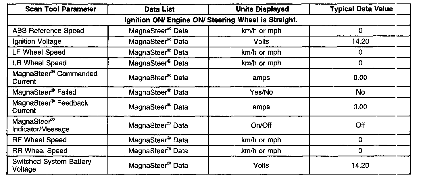 Scan Tool Data List - Electronic Brake Control Module (EBCM) - Variable Effort Steering (VES)
