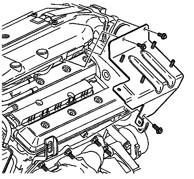 14. Remove the 2 bolts securing the engine control module (ECM) bracket to the intake plenum.