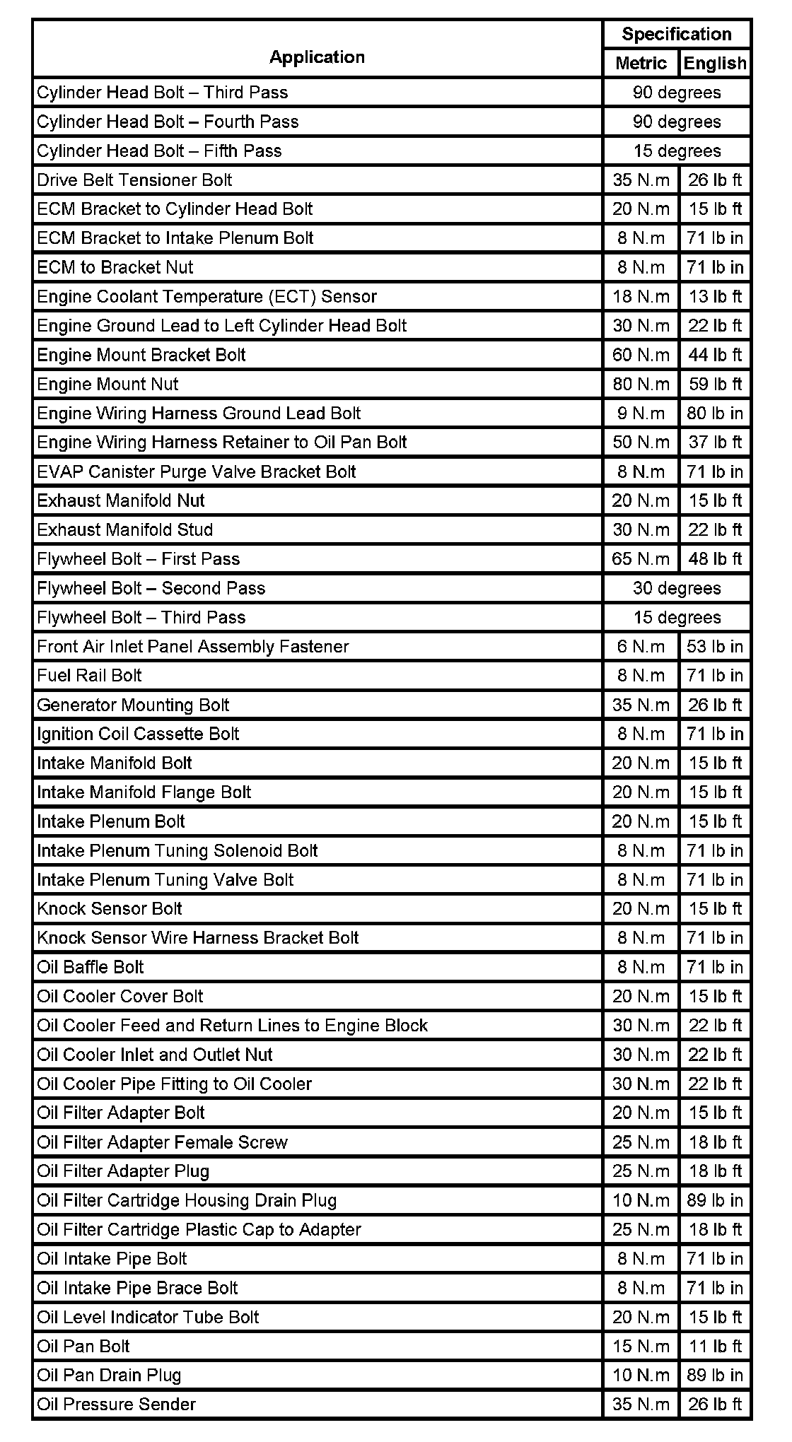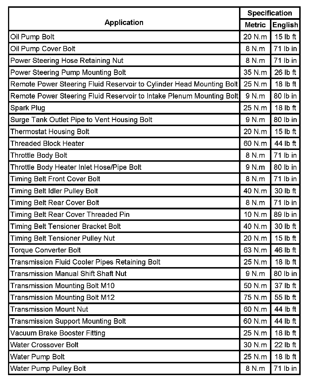 Fastener Tightening Specifications