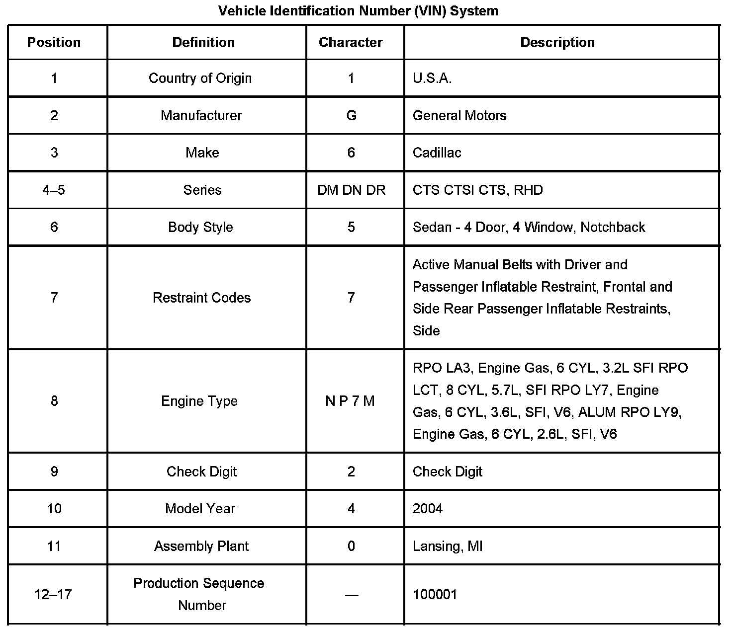 Vehicle Identification Number (VIN) System: