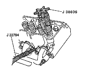 4. Compress the valve spring using the J38606.