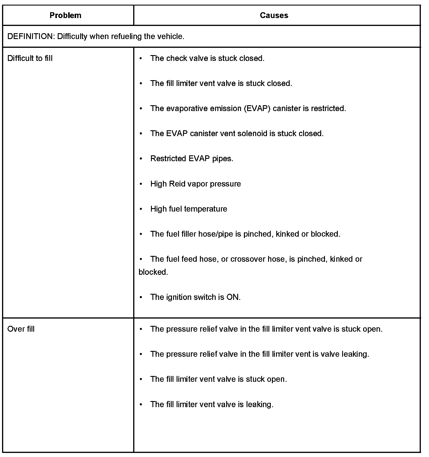 Poor Fuel Fill Quality
