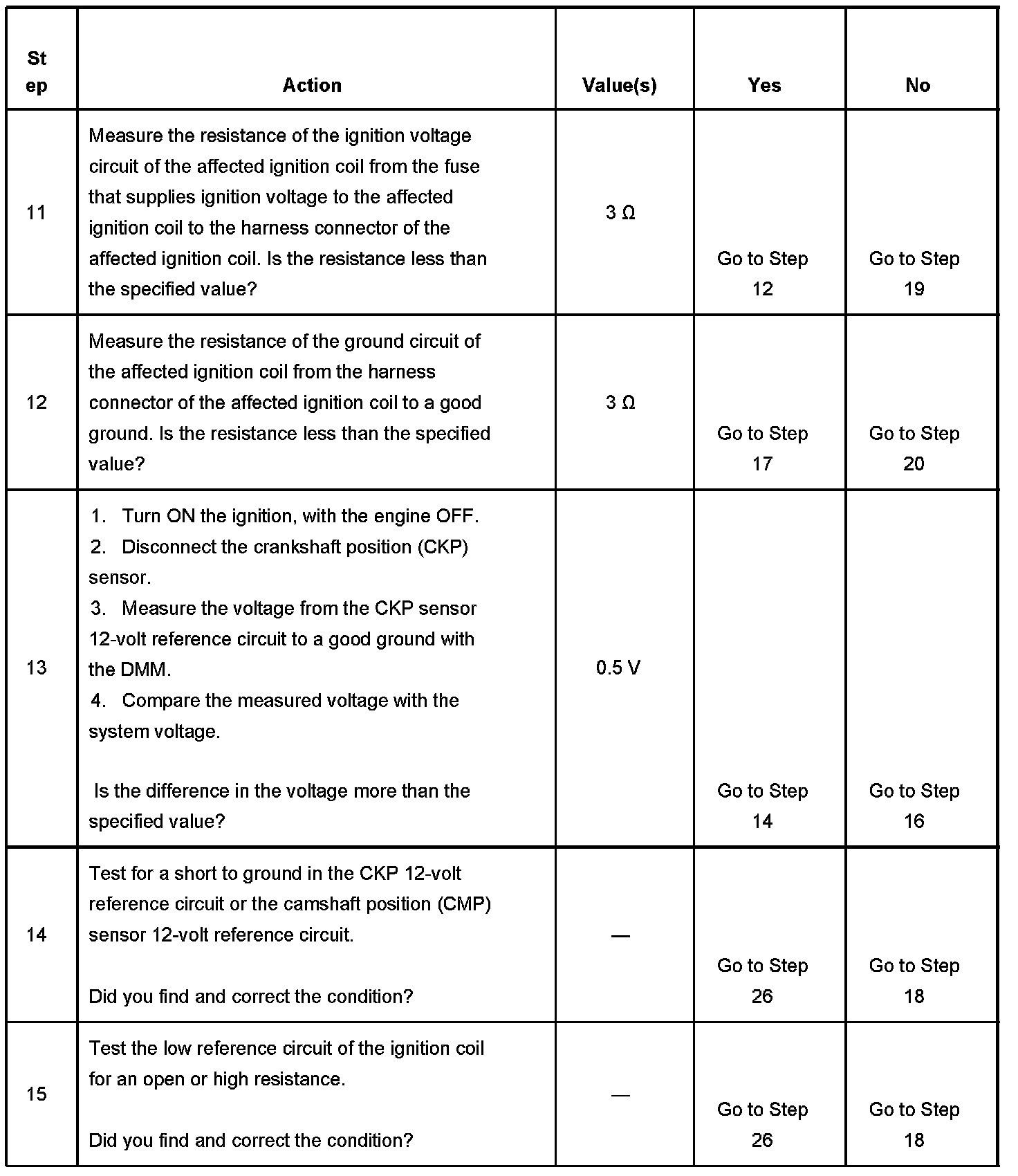 The PCM triggers an ignition coil by grounding the appropriate IC circuit using information from the crankshaft position (CKP) and camshaft position (CMP) sensors.