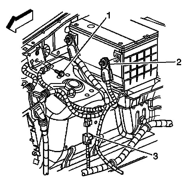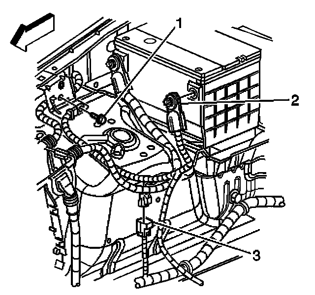 5. Disconnect the instrument panel harness connector (3) from the battery negative cable.