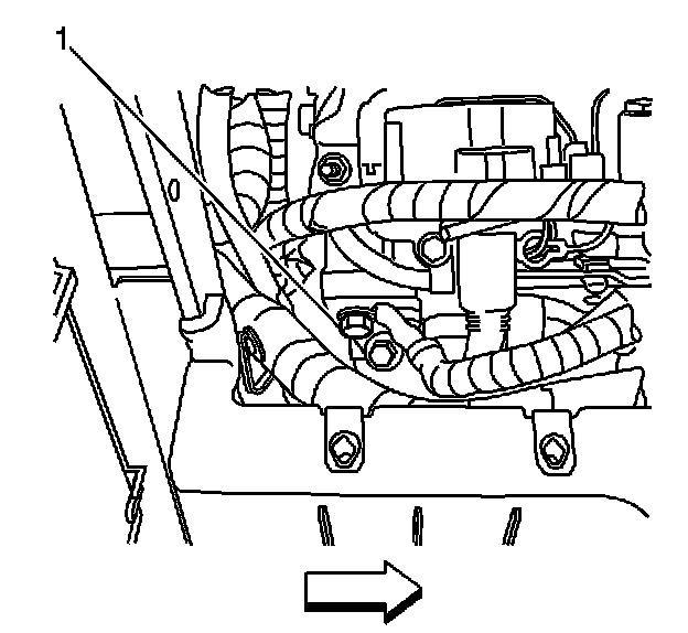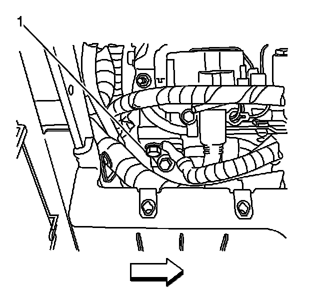 6. Remove the bolt (1) securing the battery negative cable to the engine block.