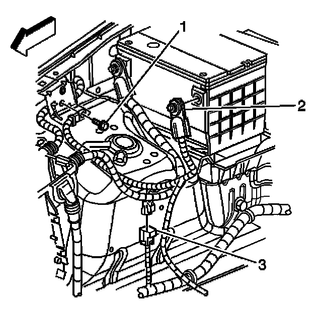 11. Remove the positive battery cable from the retaining features on the engine block.