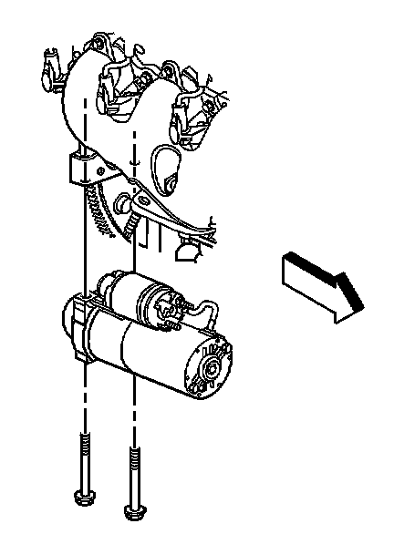 7. Remove the starter motor bolts.