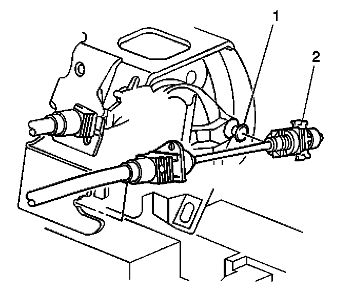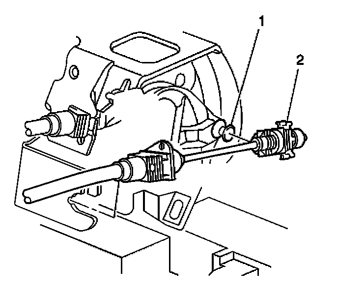 2. Hold the throttle cam open, slide the cruise cable fitting (2) off of the pin (1) on the throttle cam by pushing the cable fitting towards the throttle close direction.