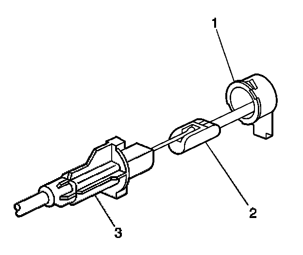 3. Snap the cruise control cable (3) into the cruise control module (1).