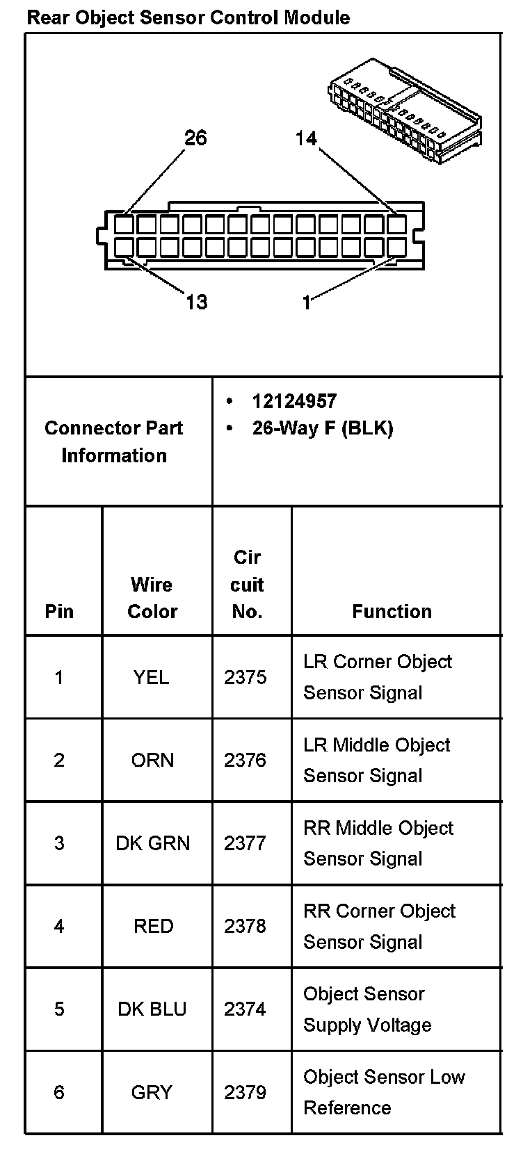 Rear Object Sensor Control Module Part 1: