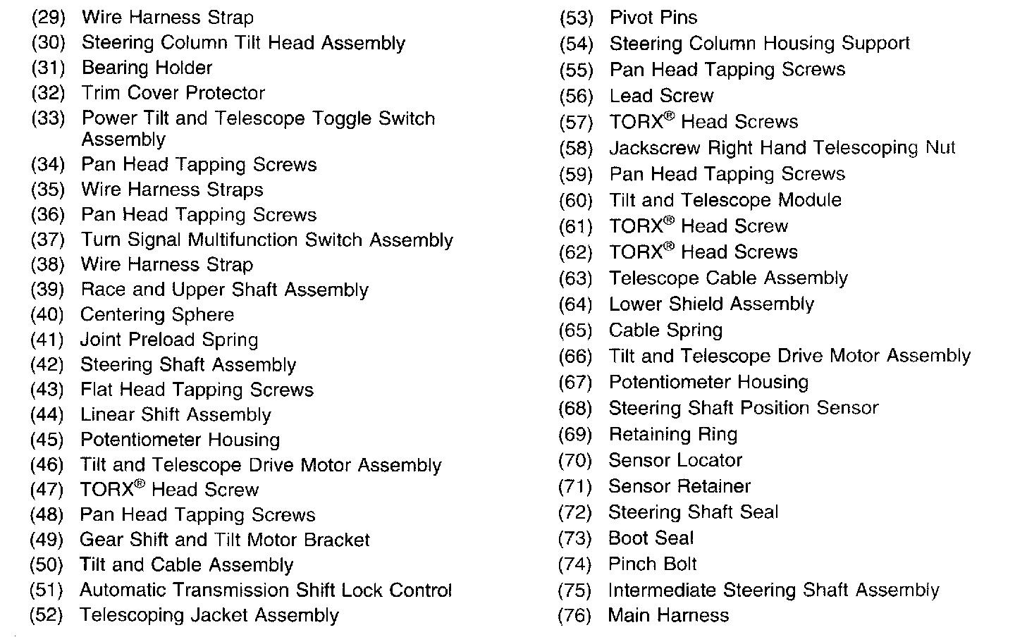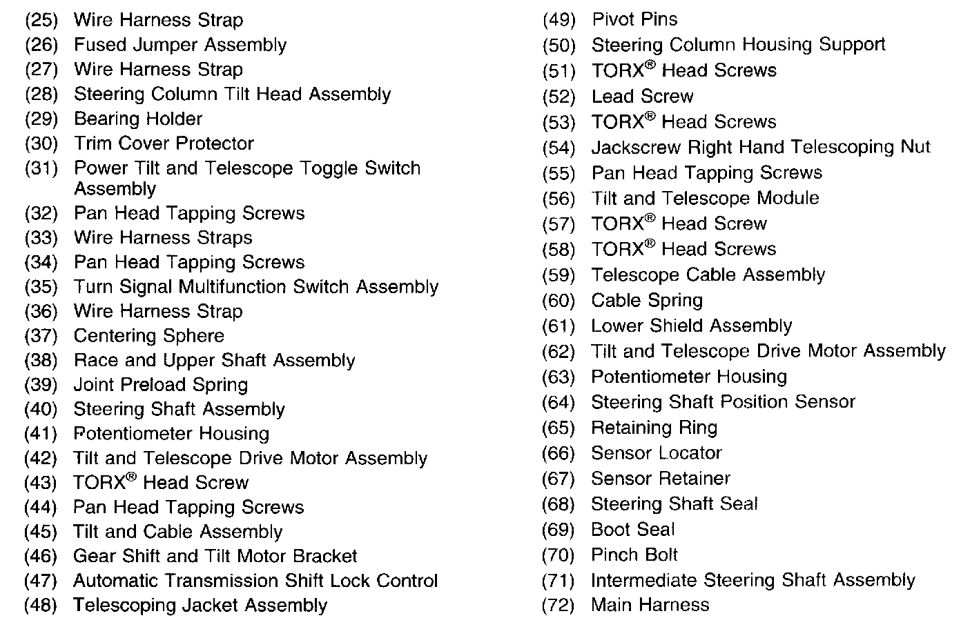 Steering Column Disassembled View (Power Tilt and Telescope, Col. Shift) Power Steering Column, Column Shift