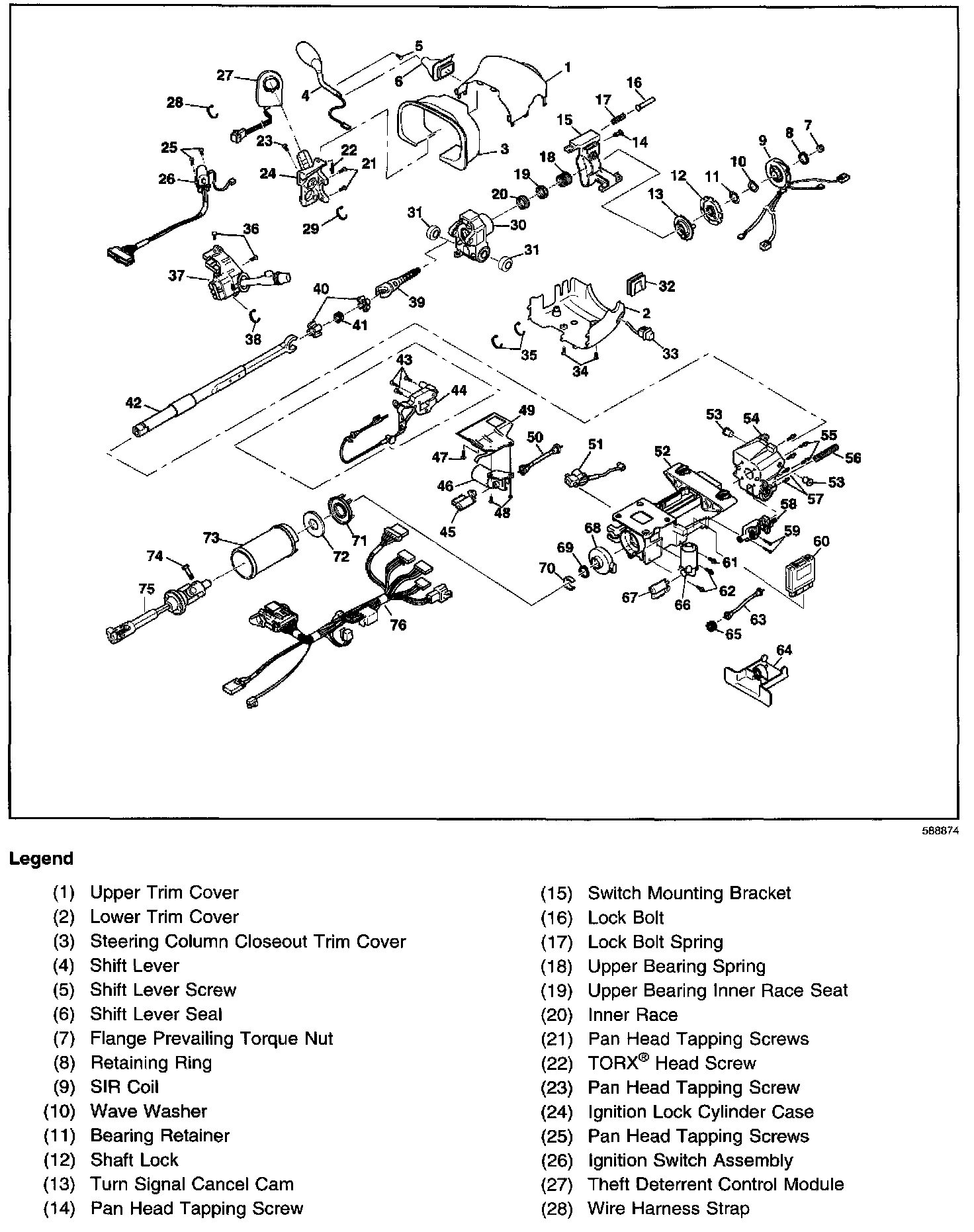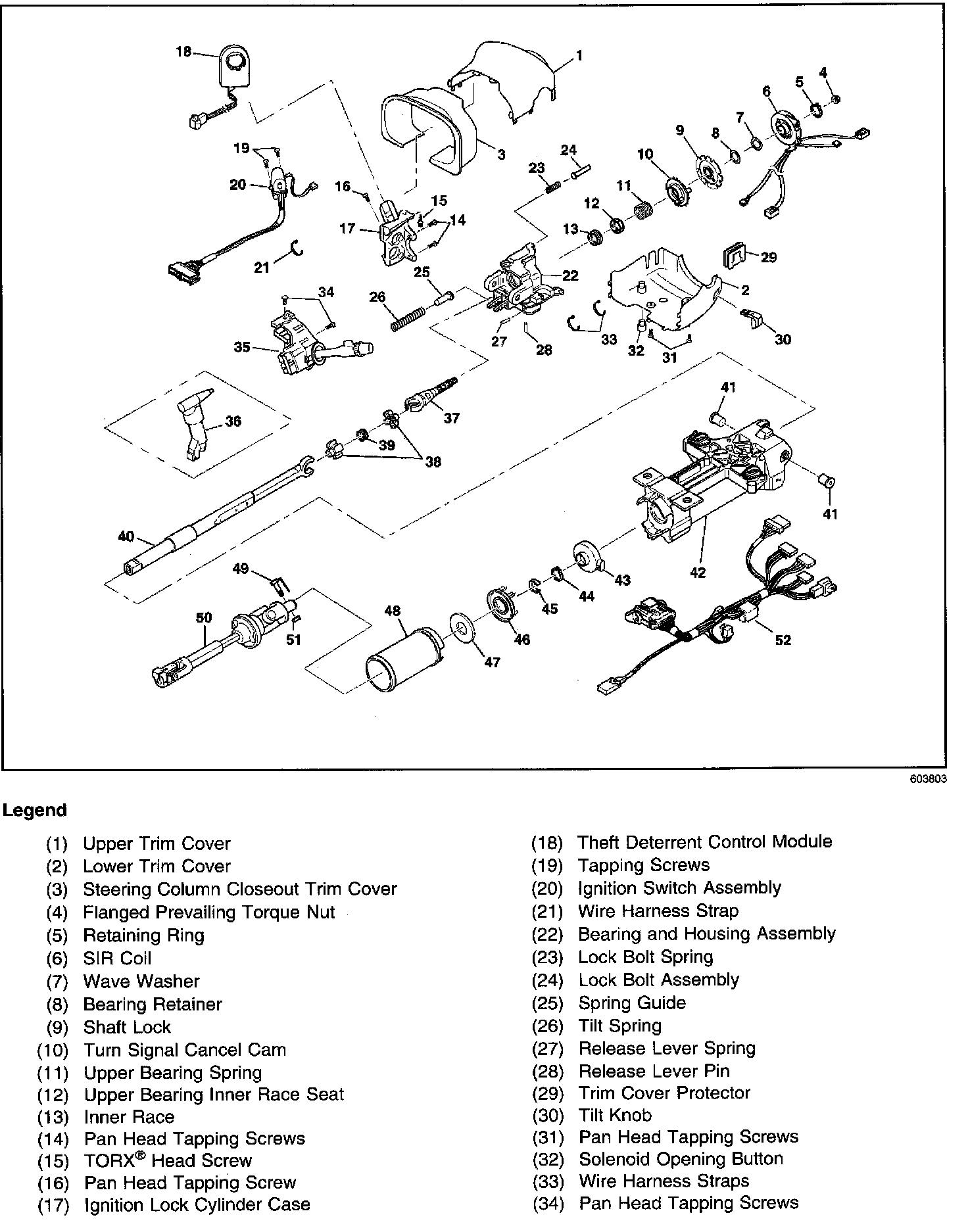 Steering Column Disassembled View (Manual Tilt, Floor Shift) Manual Tilt Steering Column, Floor Shift