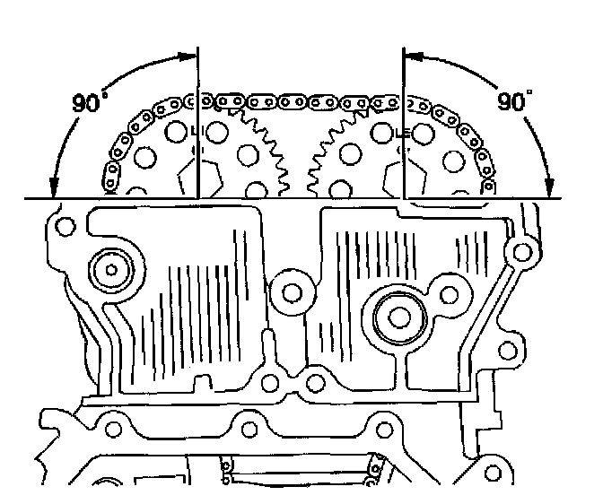 3. Ensure both camshaft sprocket drive pins are at the top of their rotation.