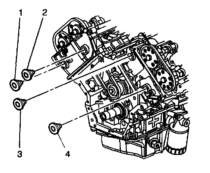 3. Install the left secondary camshaft drive chain shoe access plug (3) located in the cylinder head. Ensure the O-ring seal is attached to the access plug.
