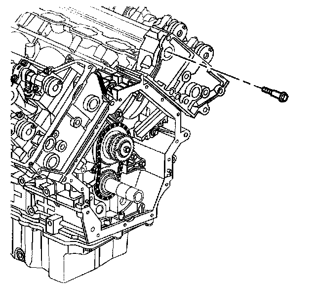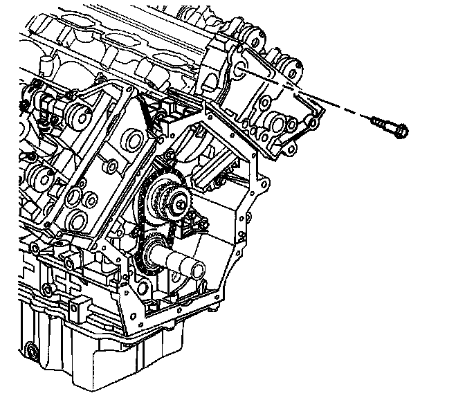 9. Remove the left secondary camshaft drive chain shoe bolt.