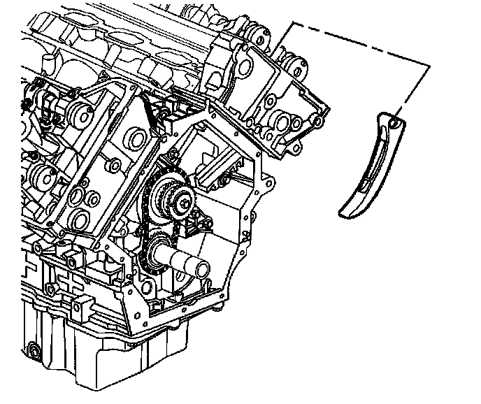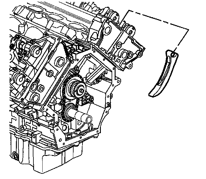 1. Position the left secondary camshaft drive chain shoe in through the top of the cylinder head.