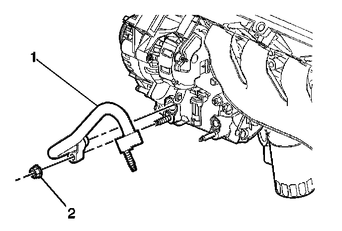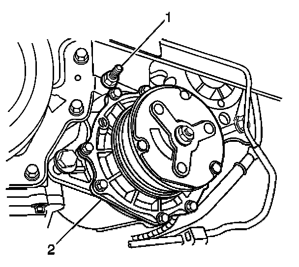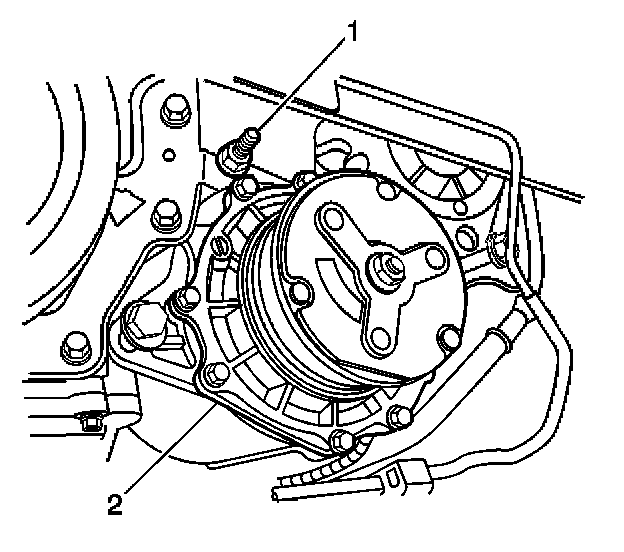 16. Remove then compressor (2) mounting stud (1).