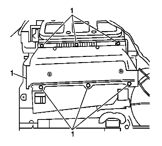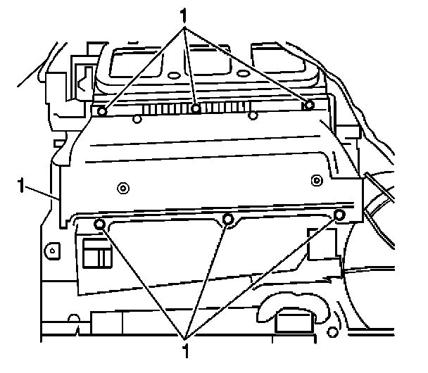 5. Install the heater core cover screws (1).