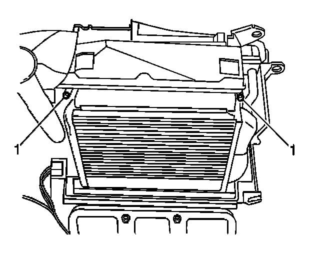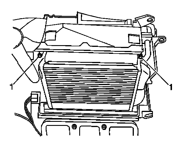 5. Remove the heater core retaining screws (1).