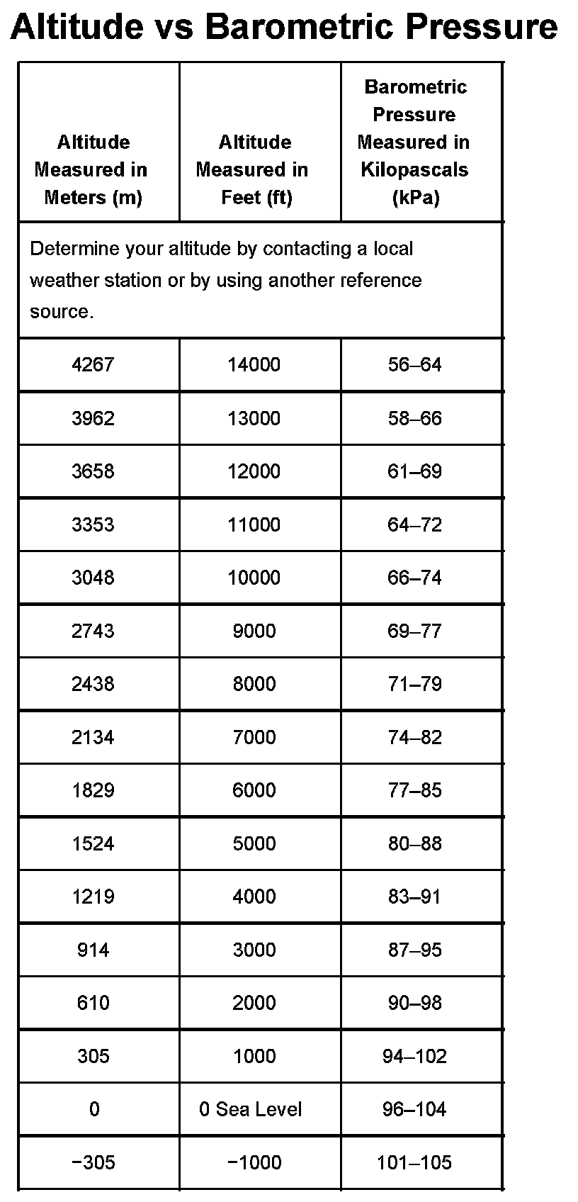 Pressure, Vacuum and Temperature Specifications