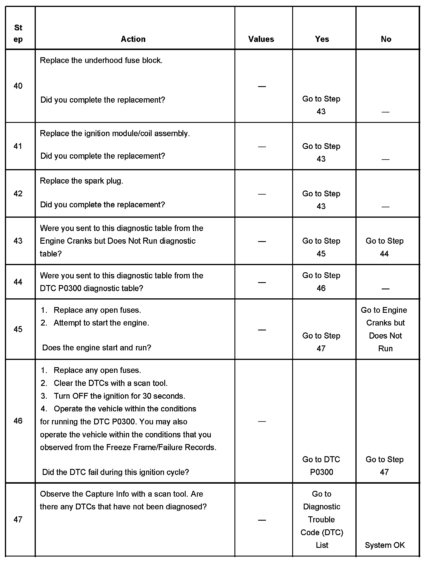 - Other electrical, fuel, or mechanical conditions can cause an engine to crank but does not run, or set a DTC P0300 misfire code.