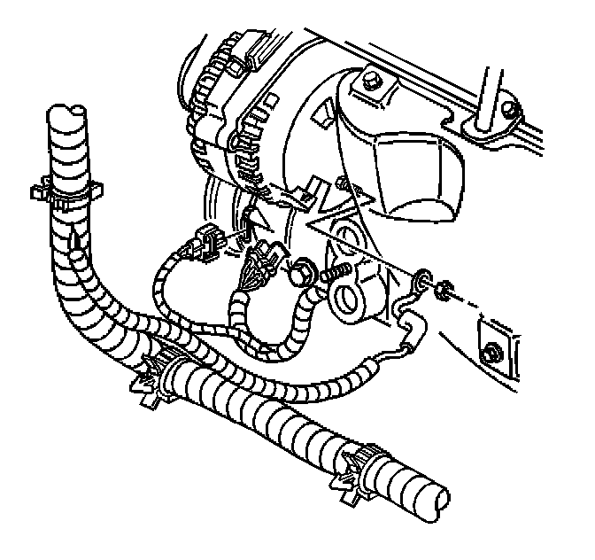 6. Remove the generator output BAT terminal nut and disconnect the positive lead from the generator.