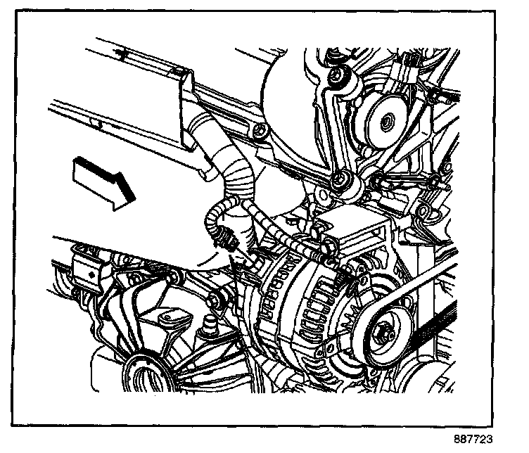 8. Lift the generator off of the mounting bracket in order to gain access to the connector and the generator output BAT terminal nut.