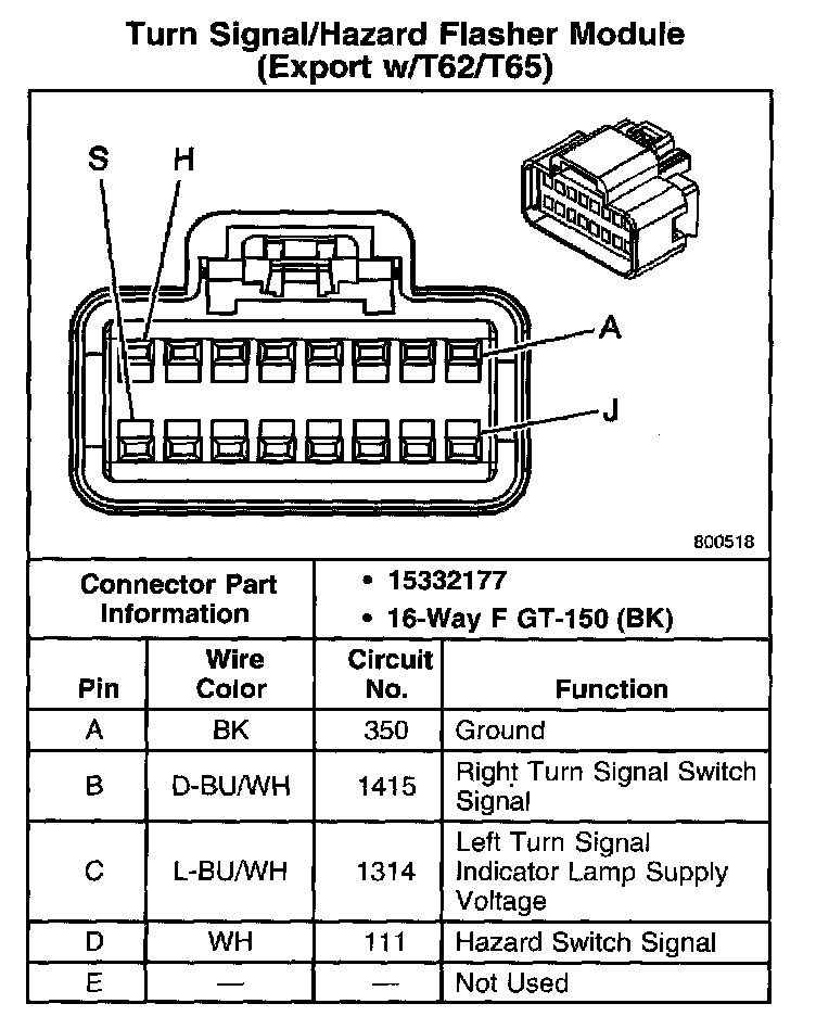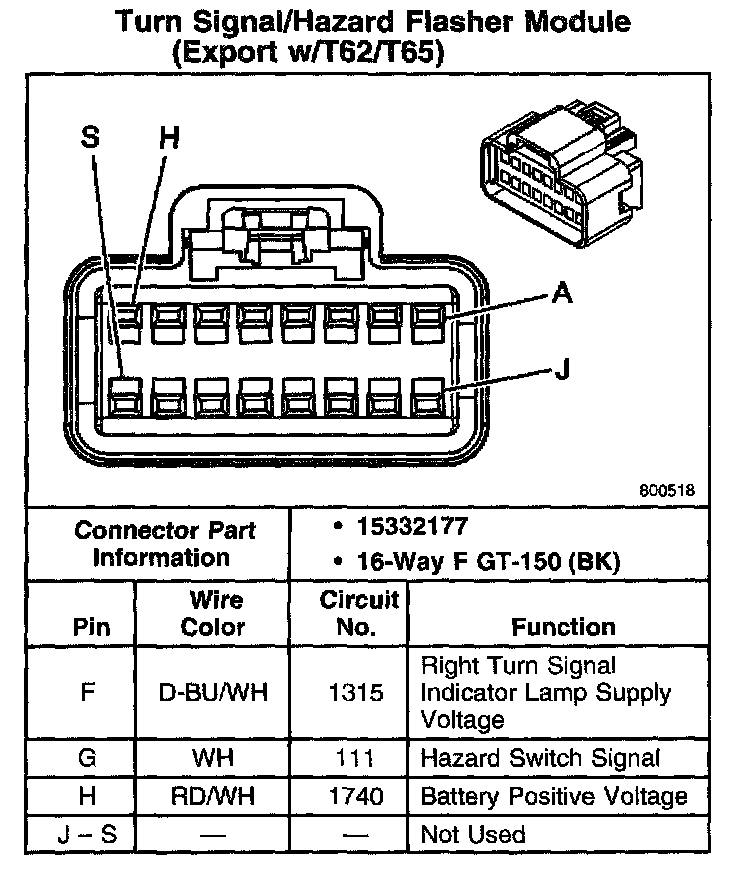 Turn Signal/Hazard Flasher Module (Export With RPO Code T62/T65) Part 2: