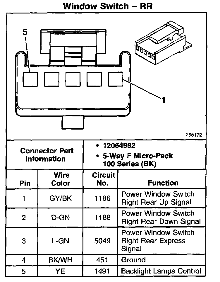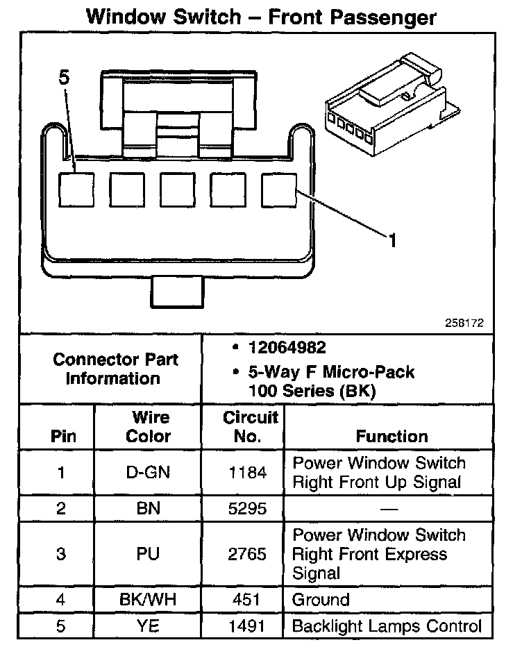 Window Switch - Front Passenger: