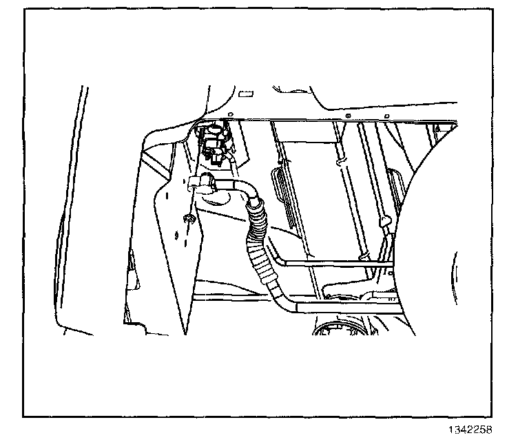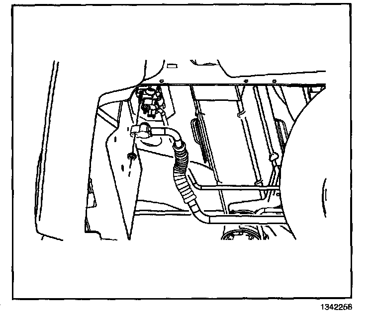 3. Remove the auxiliary evaporator inlet line nut from the auxiliary HVAC module at the underside of the vehicle.