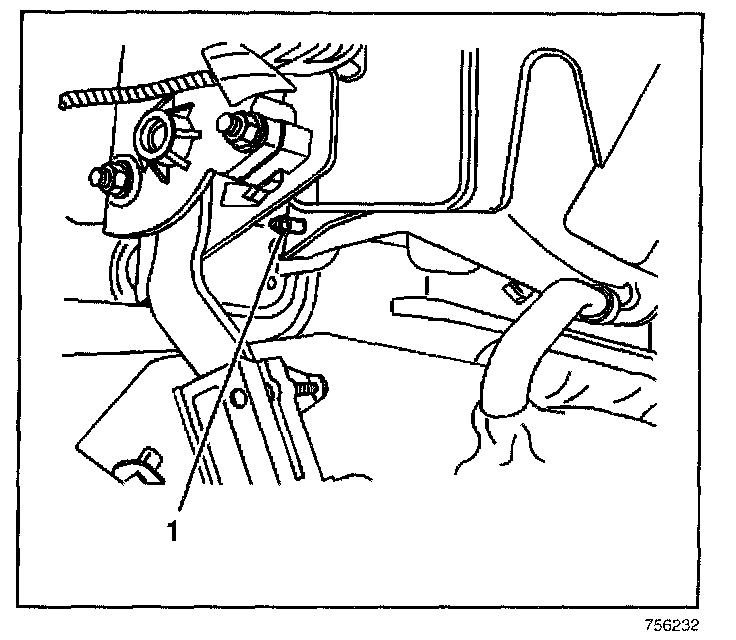 4. Install the upper left HVAC module mounting nut (1).