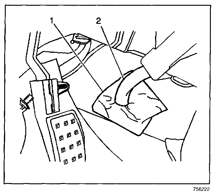 15. Disconnect the HVAC module drain tube (2) from the floor.