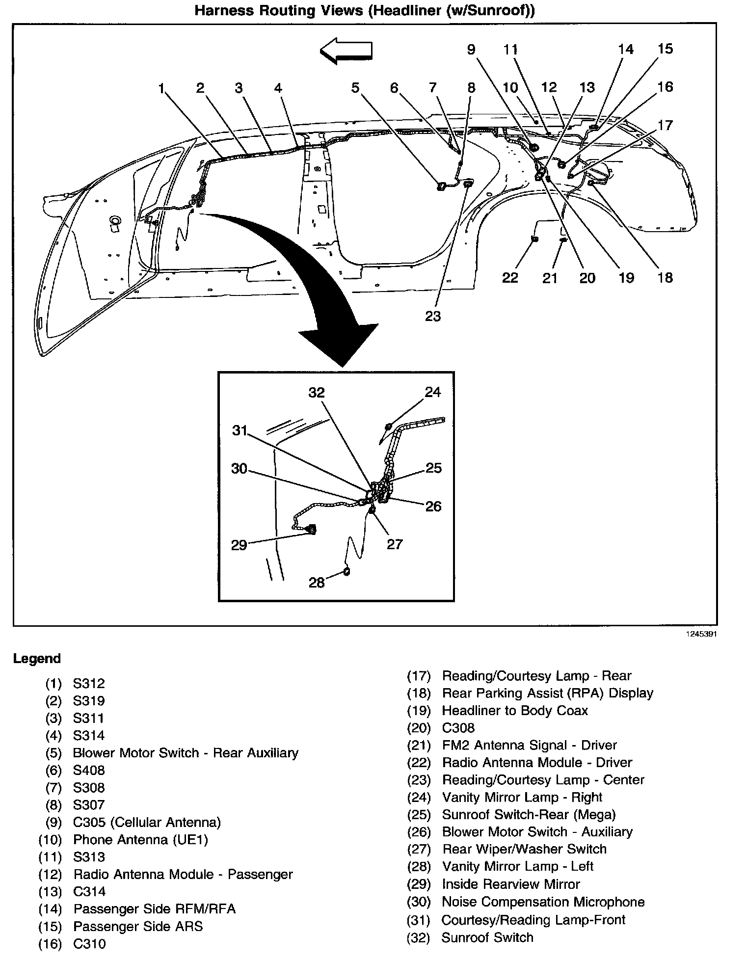 Harness Routing Views (Headliner (w/Sunroof)):