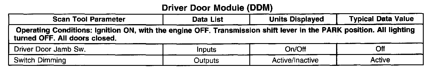 Scan Tool Data List - Drivers Door Module (DDM)